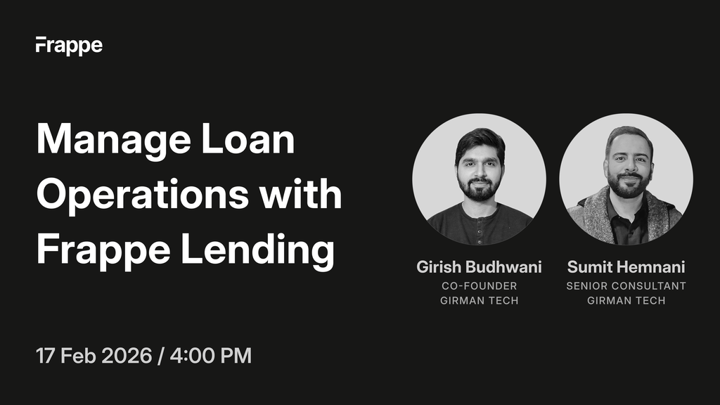 This webinar explores how Frappe Lending helps financial institutions simplify loan origination, collections, and reporting on a single, configurable, open-source platform. We’ll walk through real-world lending workflows and show how teams can reduce operational overhead while scaling confidently.